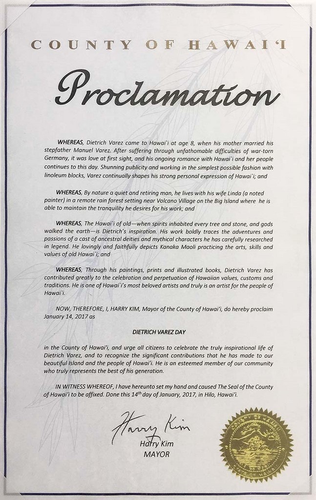 January 14, 2017 was declared "Dietrich Varez Day" by Big Island Mayor Harry Kim. What an honor!